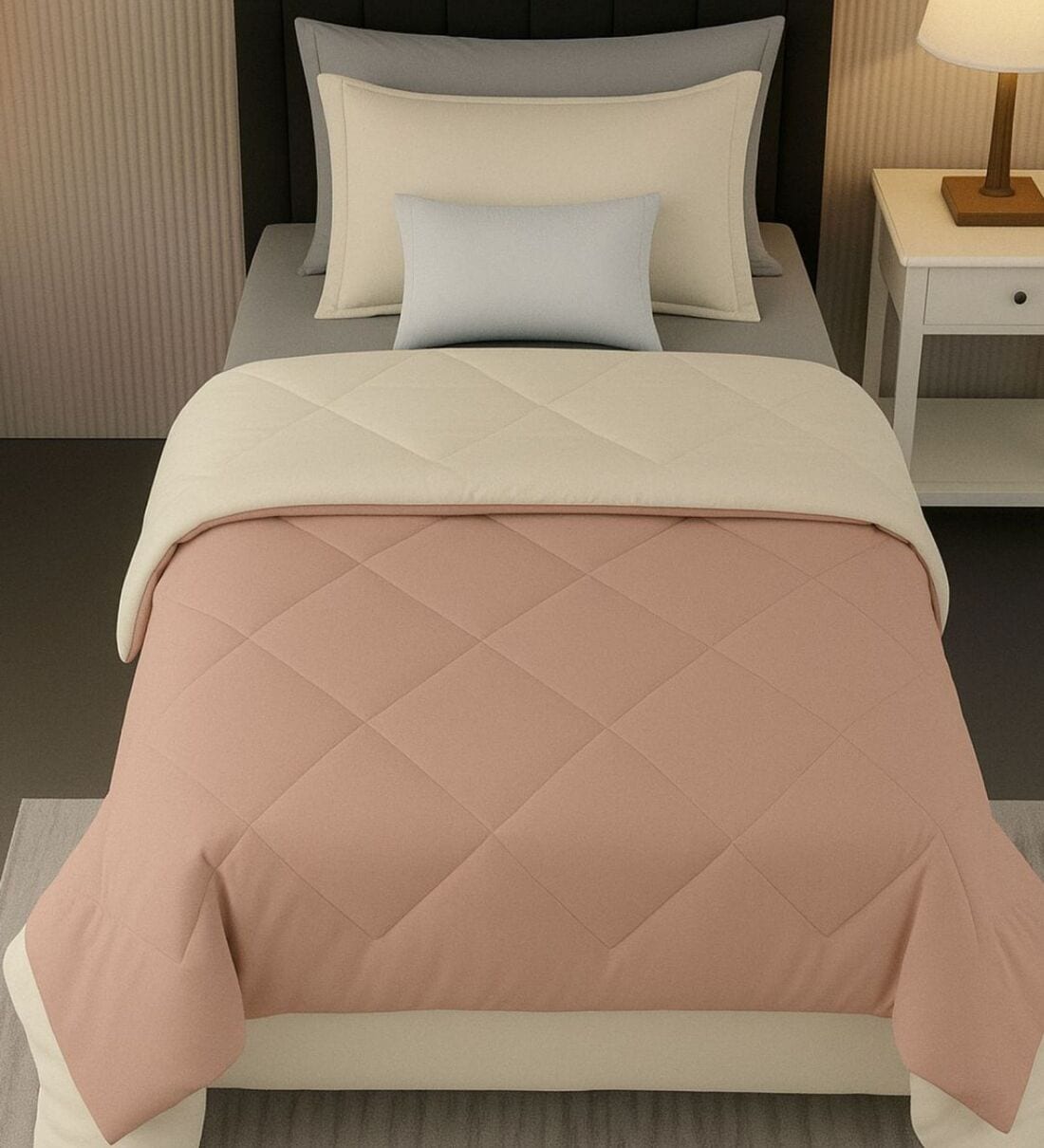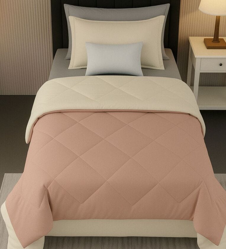 Brown Cotton 210TC Solid Plain All Weather Single 150GSM Reversible Comforter