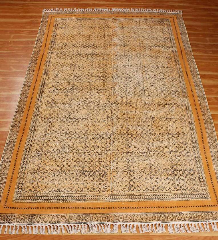 This is a beautiful handmade Cotton kilim rug weaved on Indian looms stamped with natural vegetable-dyes using hand-made wooden blocks achieving the perfection of block printing art of Jaipur. This is best suitable for your home office entrance, bedroom, living room, kids room, dinning room, kitchen and outdoor patio, terrace, beach and garden. All the materials and color dyes used in this beautiful handmade rug are sustainable and eco-friendly. NOTE - Actual colors may slightly vary from the colors shown in the pictures due to photography setup with natural lights, different monitor screen settings and the nature of the product, being 100% hand made.