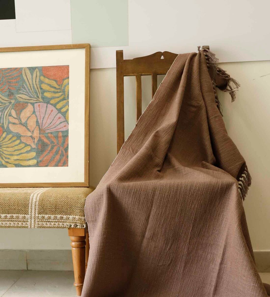 Brown Cotton Solid 60X44 Inches Reversible Throw