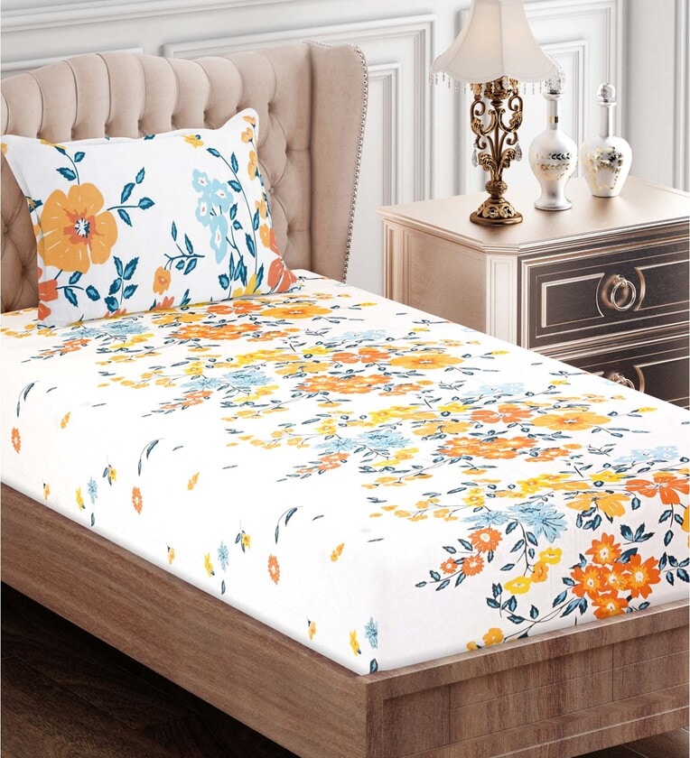 Brown Floral 160 TC Cotton Single Bed Sized Bed Sheets With 1 Pillow Cover