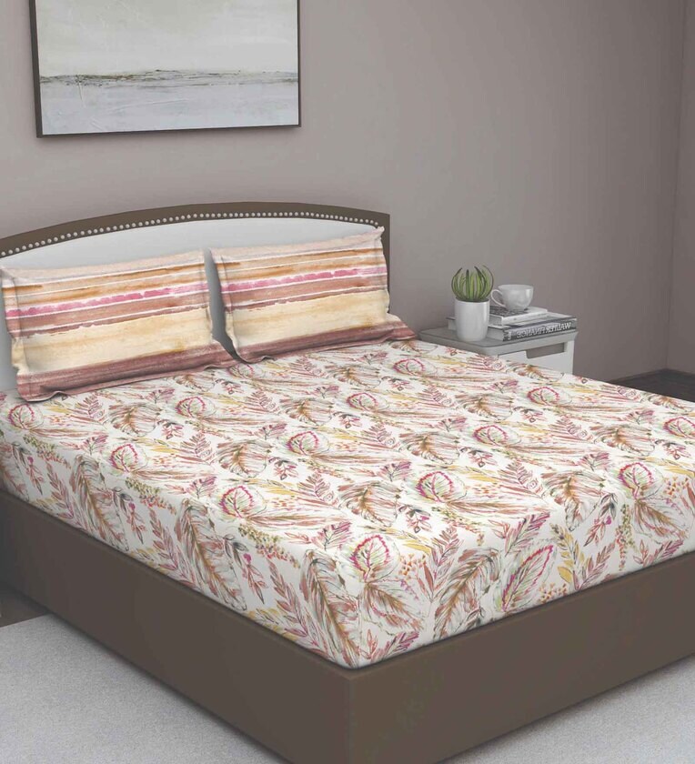 Brown Floral 180 TC Cotton Queen Sized Bed Sheets with 2 Pillow Covers