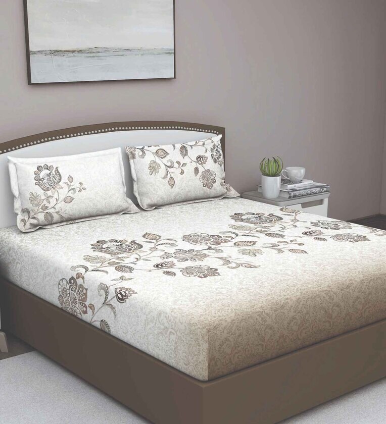 Brown Floral 180 TC Cotton Queen Sized Bed Sheets with 2 Pillow Covers