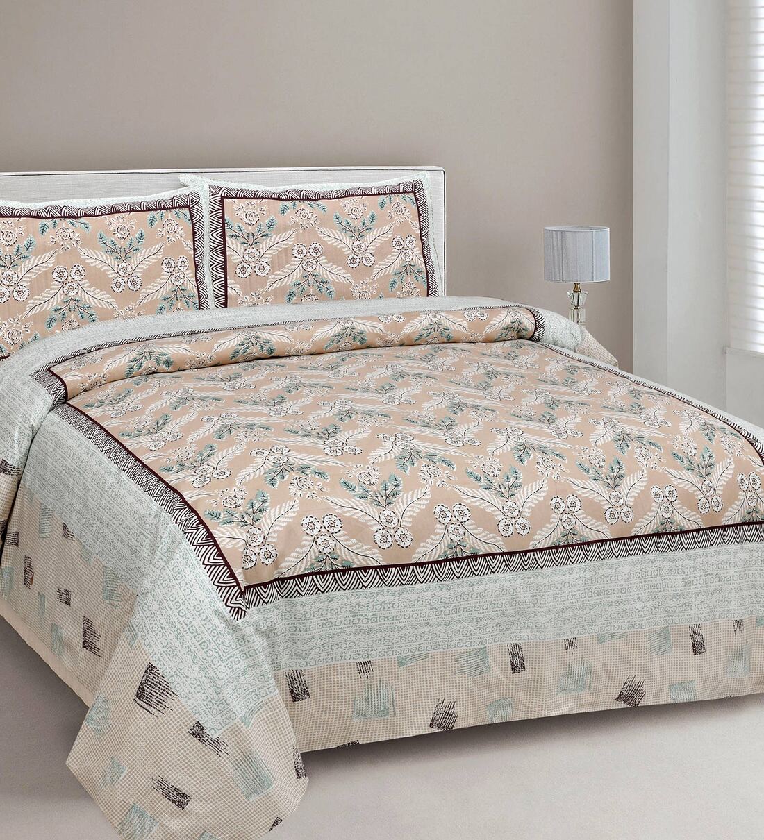 Brown Floral 210 TC Cotton King Sized Bed Sheets with 2 Pillow Covers