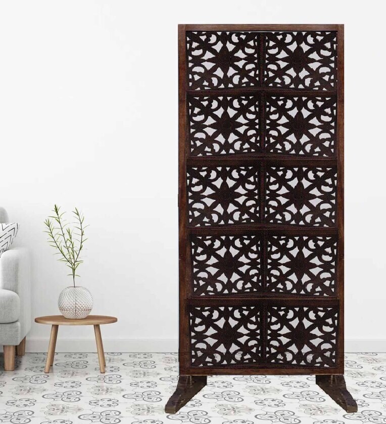 Brown Floral Galaxy Handcarved Wooden Room Divider Single Panel With Stand