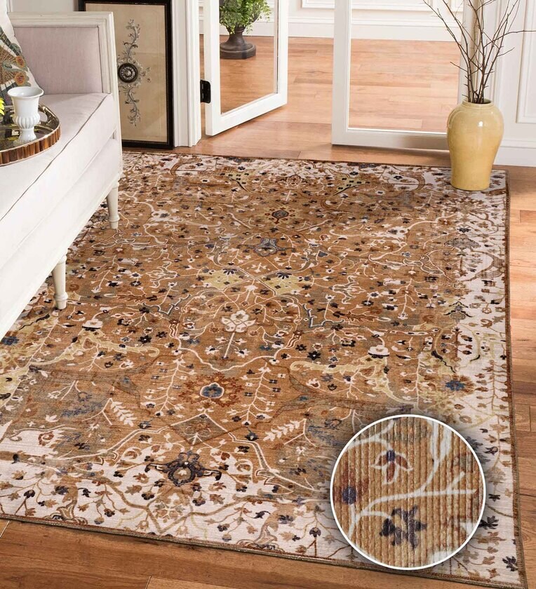 Brown Floral Polyester 4' X 6' Machine Made Carpet