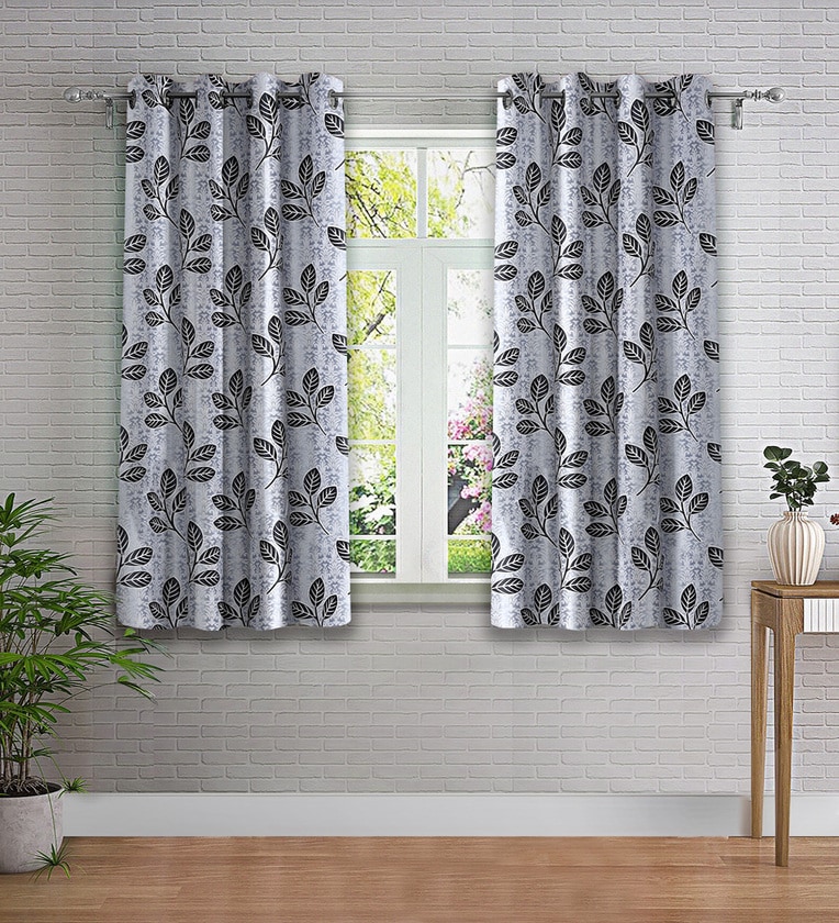 Brown Floral Polyester 5ft Semisheer Eyelet (Set Of 2)