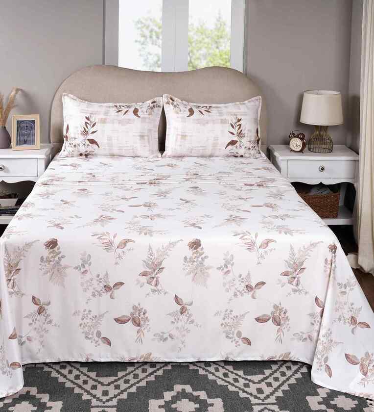 The elegant floral prints with contrast pillows makes the complete set entirely exquisite. The pillows can be used from both sides with entirely different look. These sheets are soft and smooth with extra luxury sateen finish. The sheet has been made from compact yarn and mercerized making it lustrous and durable. The long staple fibers used in the sheet adds to its softness and high quality. The breathable nature of cotton fibers makes it softer & skin friendly.