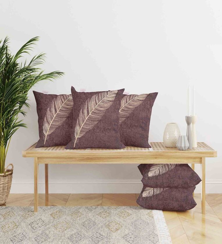 Brown Floral Velvet 16 x 16 Inches Cushion Covers (Set of 5)