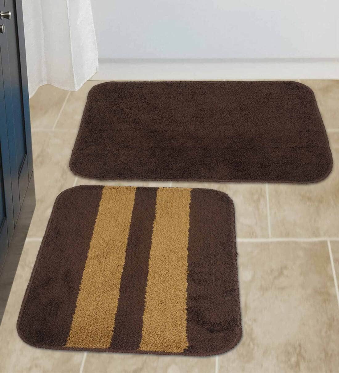 Brown Geometric Polyester 16x24 Inches AntiSkid Bath Mats