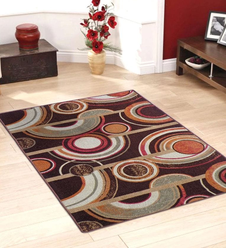 Brown Geometric Polyester 4 ft x 6 ft Machine Made Carpet