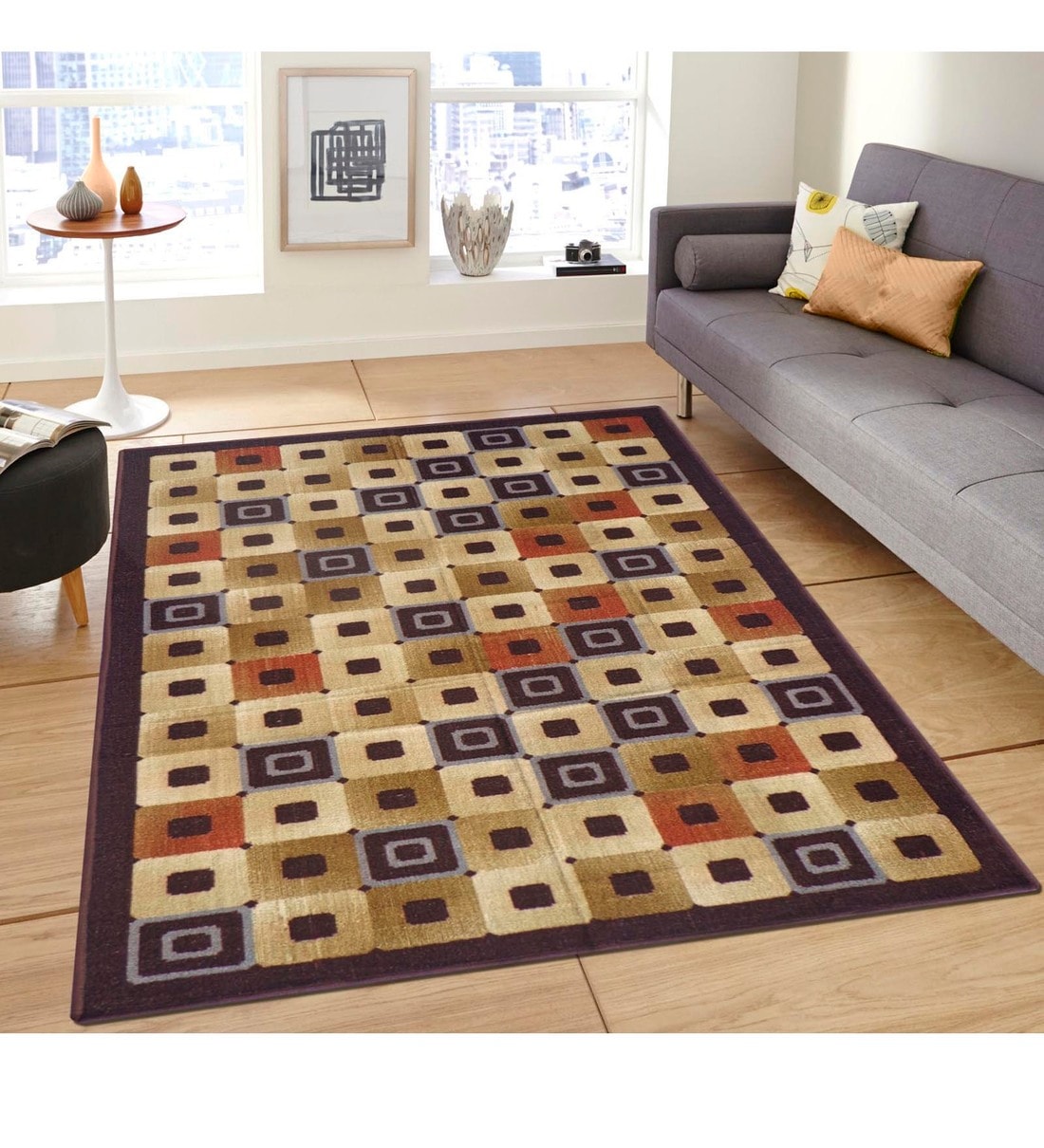 Brown Geometric Polyester 5 ft x 7 ft Machine Made Carpet