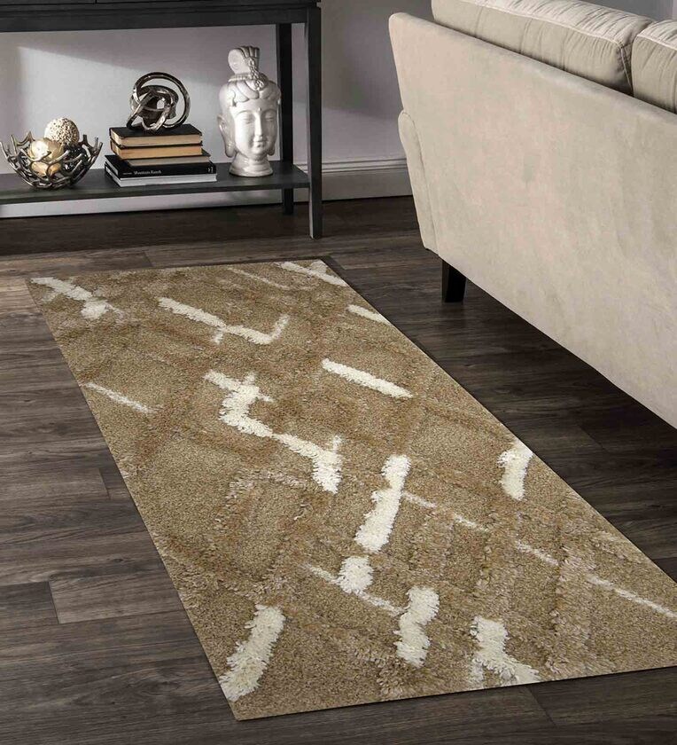 Brown Geometric Polyester 59x24 Inches Machine Made Floor Runner