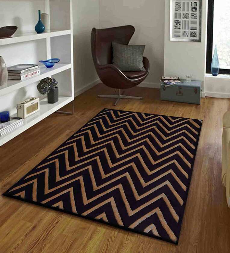 Brown Geometric Wool 3 ft x 5 ft Hand Tufted Carpet