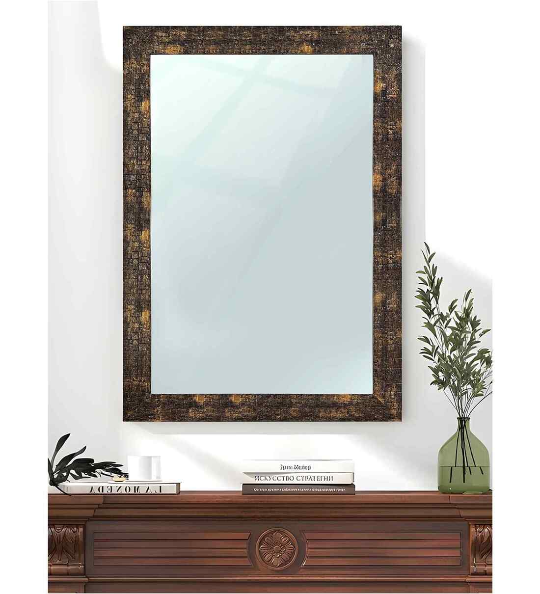 Art Street Bathroom Wall Mirror, Copper Wall Mount Rectangular Makeup Mirror, Decorative Looking Glass with Frame for Home, Bathroom & Living Room (Size: Inner: 16x24 in, Outer: 19x27 Inch)