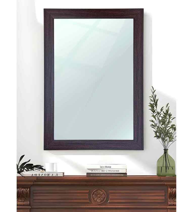 Art Street Bathroom Wall Mirror, Brown Wall Mount Rectangular Makeup Mirror, Decorative Looking Glass with Frame for Home, Bathroom & Living Room (Size: Inner: 16x24 in, Outer: 19x27 Inch)