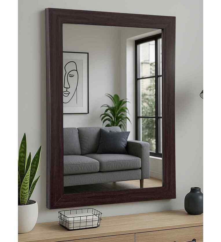 Art Street Bathroom Wall Mirror, Brown Wall Mount Rectangular Makeup Mirror, Decorative Looking Glass with Frame for Home, Bathroom & Living Room (Size: Inner: 12x18 in, Outer: 15x21 Inch)