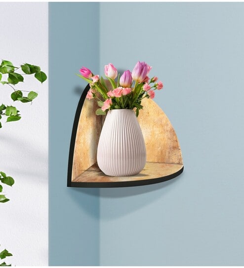 MDF corner with printed designs corner wall shelf for living room with matte finish for perfect home decor.