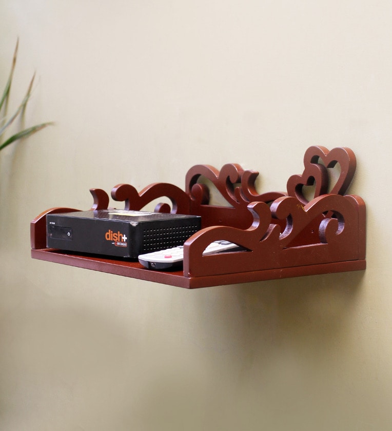 Engineered Wood Carved Wall Mounted Set Top Box Holder in Brown Colour