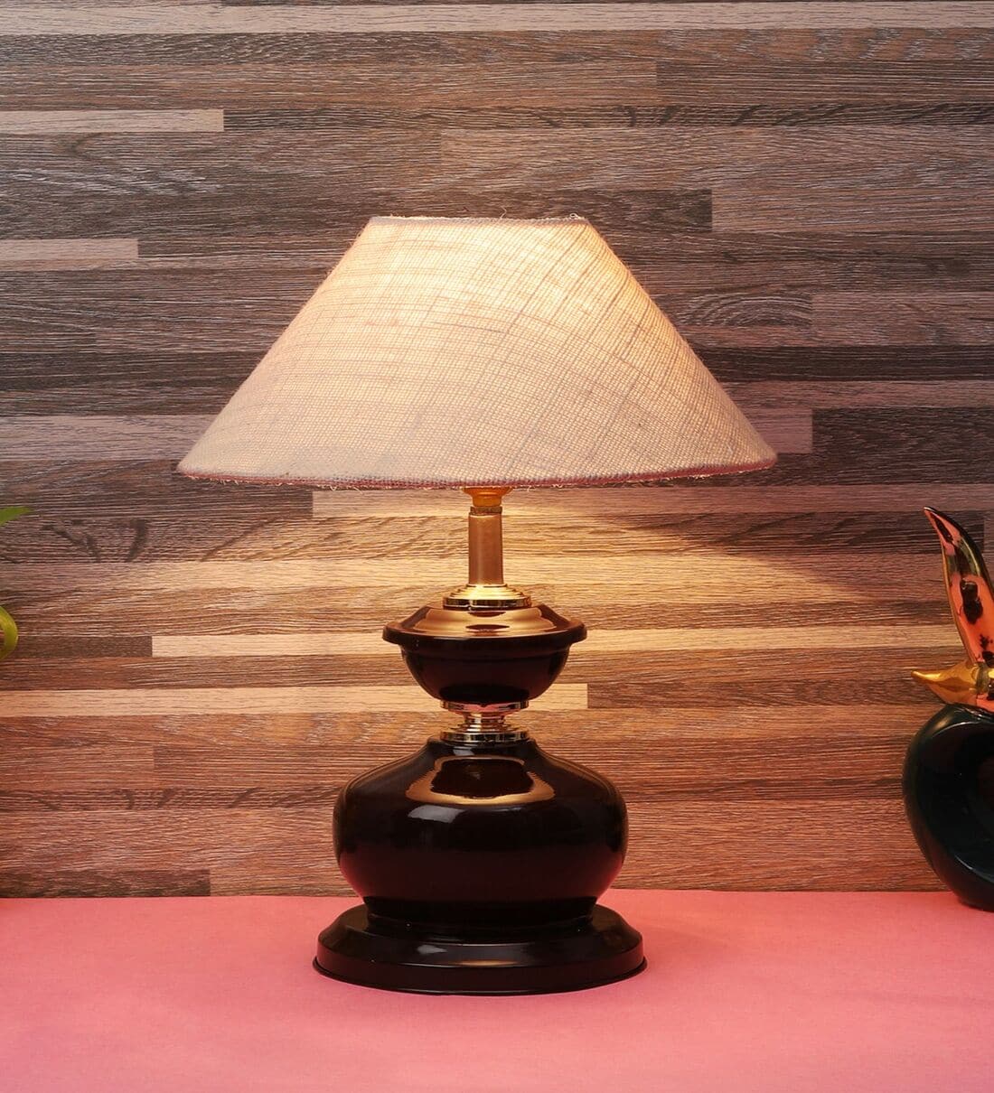 Brown Metal & Natural Fiber White Colour Table Lamp