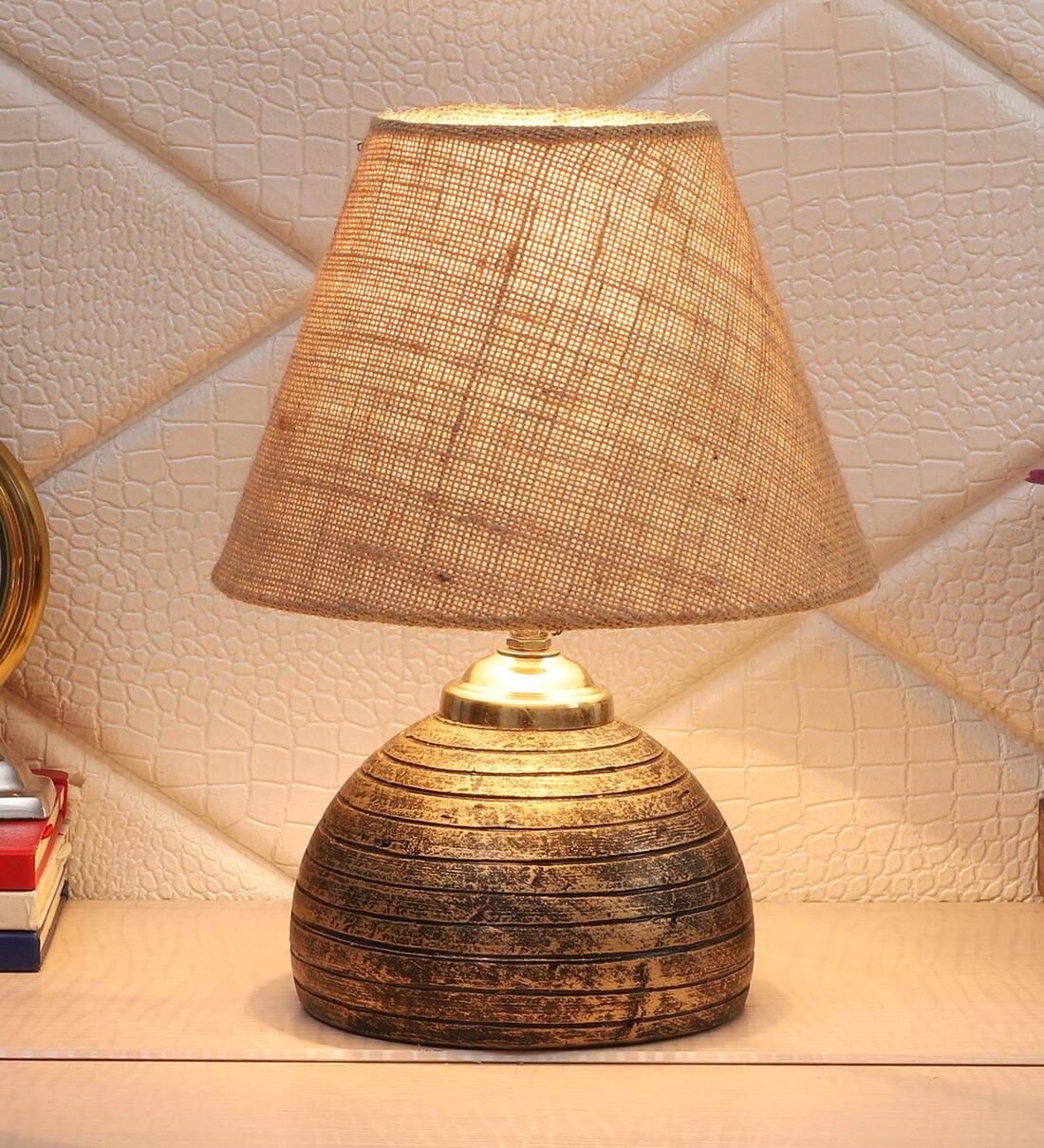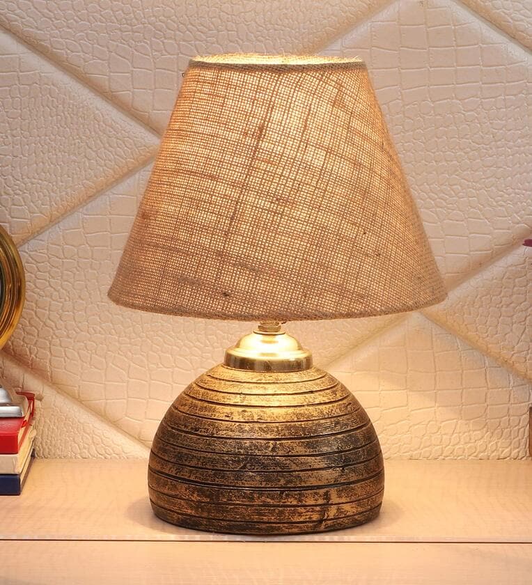 Brown Natural Fiber Shade Table Lamp With Antique Terracotta Base