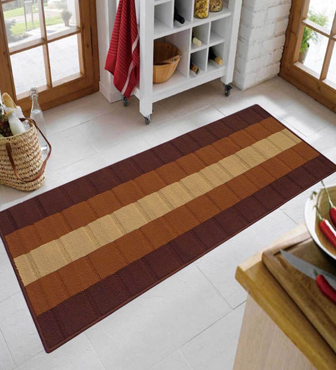 Brown Nylon 60 x 24 Inches Machine Made Floor Runner