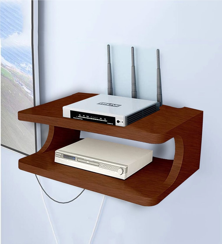 These D-shape designed Light brown floating TV setup box wall shelf is as much a piece of art as minimalist wall decorative. on a TV setup of box can add some small storage item also. Modern design of the shelves add wall mounted accents to any home decor. This floating TV console has a stylish design, add elegance to your living room, bedroom or media room, and doesn't occupy floor space.