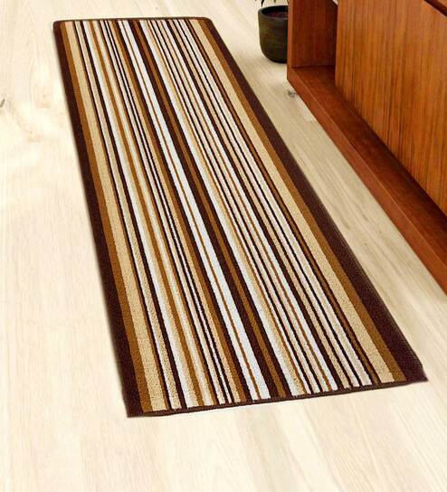 Brown Polyester 22 x 55 Inches Machine Made Floor Runner
