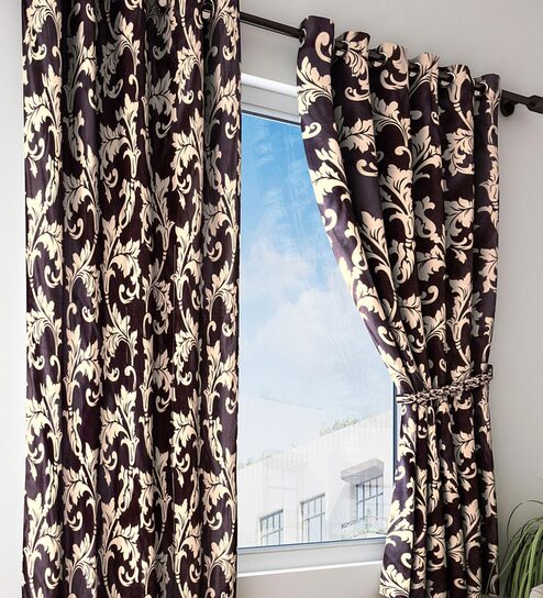 Brown Floral Polyester 5 Ft Semisheer Eyelet Window Curtains (Set of 2)