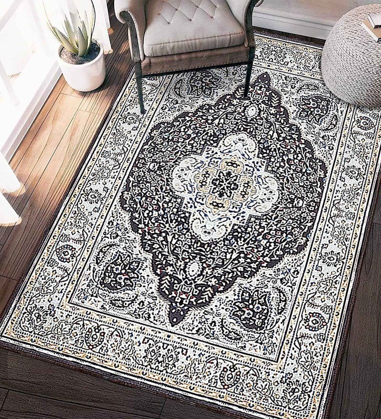 Brown Polyester Oriental 4 x 6 Feet Machine Made Carpet