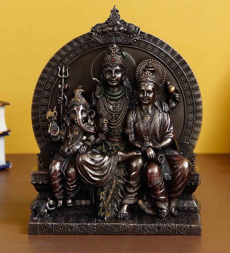 Brown Polyresin and Bronze Lord Shiva Parivar Sitting on Singhasan Idol