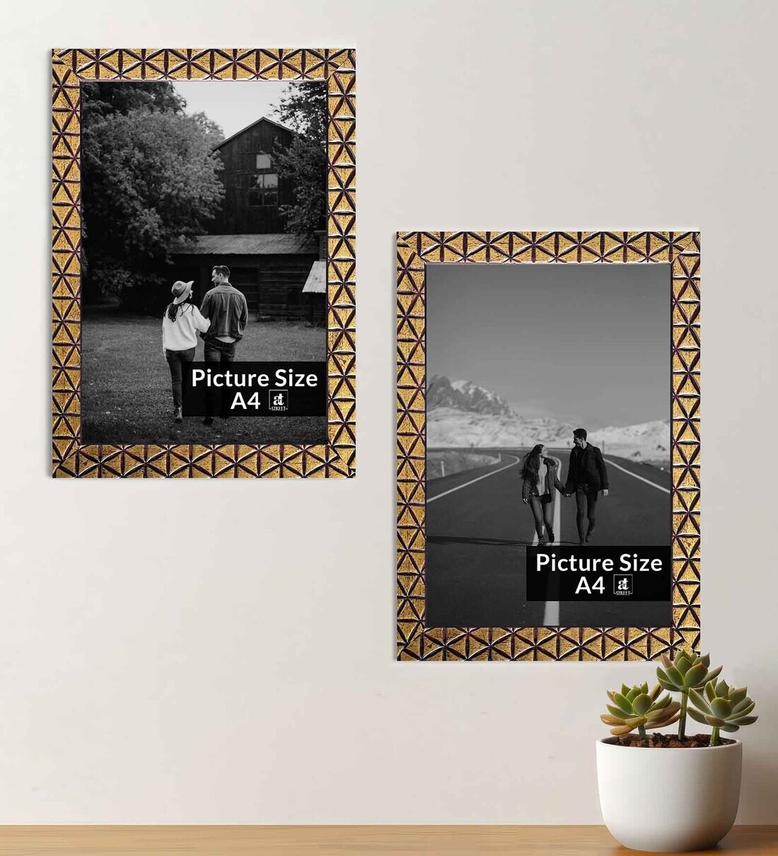 Brown Polysynthetic Wood Triangle Designed Photo Frames Wall Mount