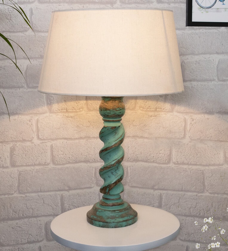 Brown Shade Table Lamp With Wooden Base