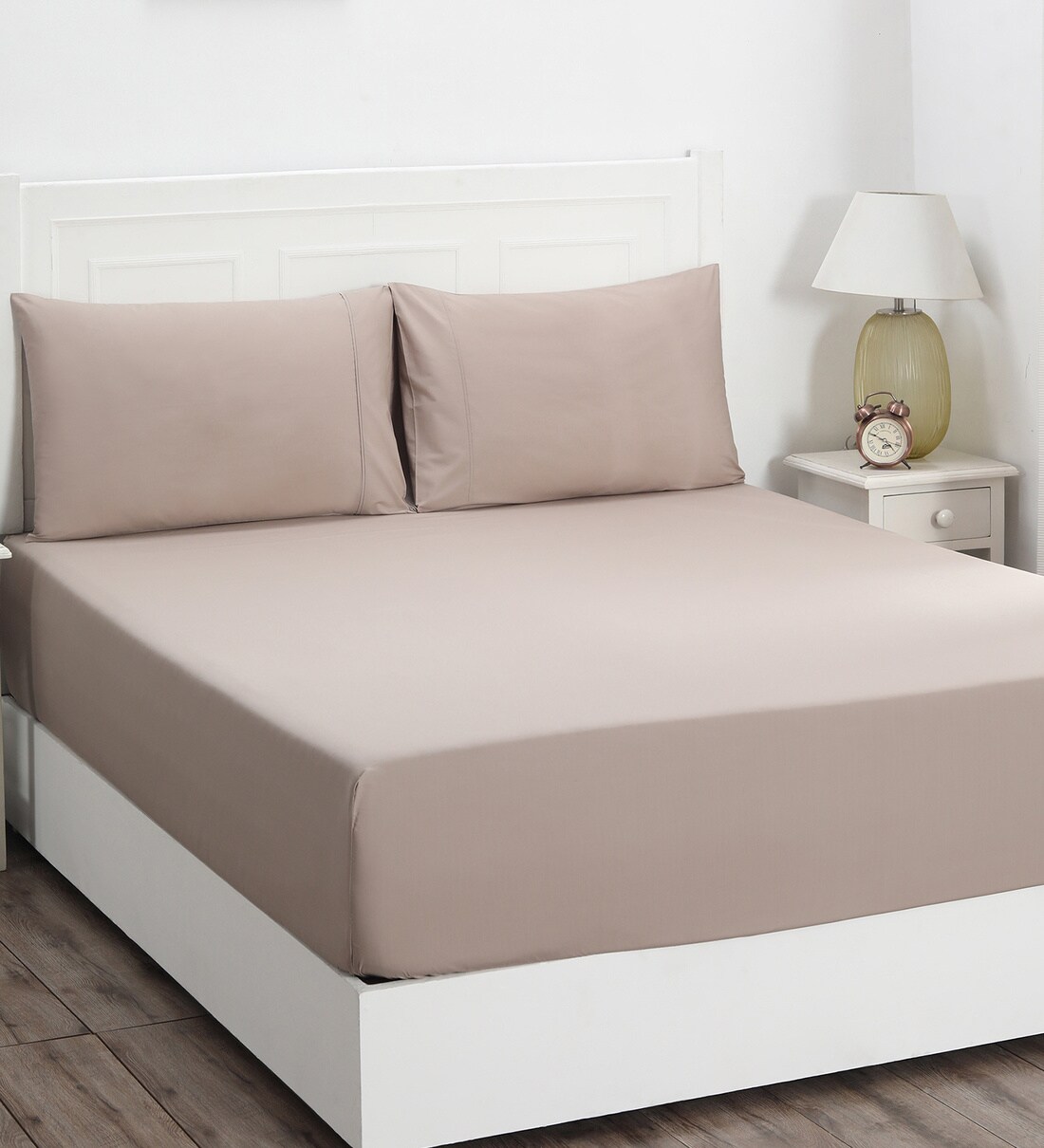 Brown Solid 200 TC Cotton King Sized Bed Sheets with 2 Pillow Covers