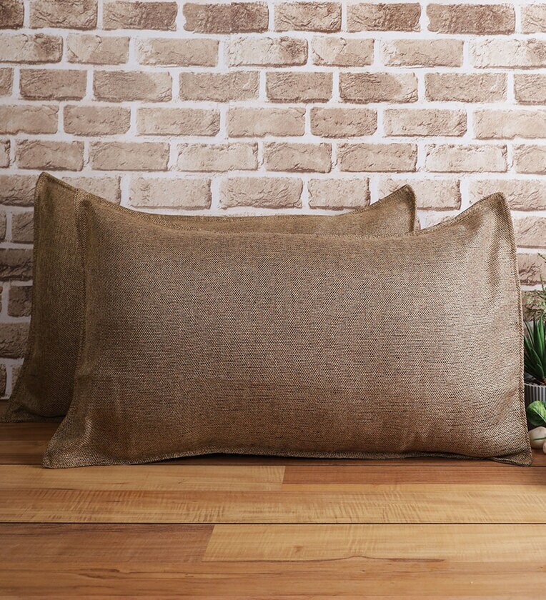 Brown Solid 210TC Jute 17 x 27 Inches Pillow Covers (Set of 2)