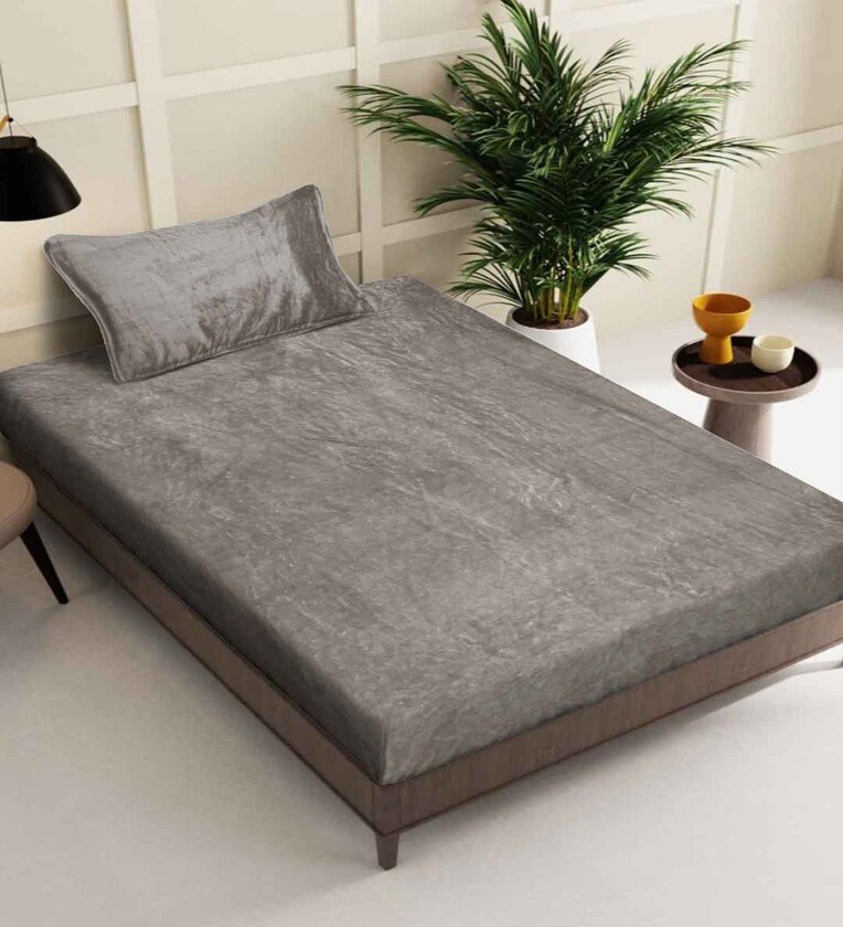 Brown Solid 300 TC Wool Single Bedsheet with Pillow cover