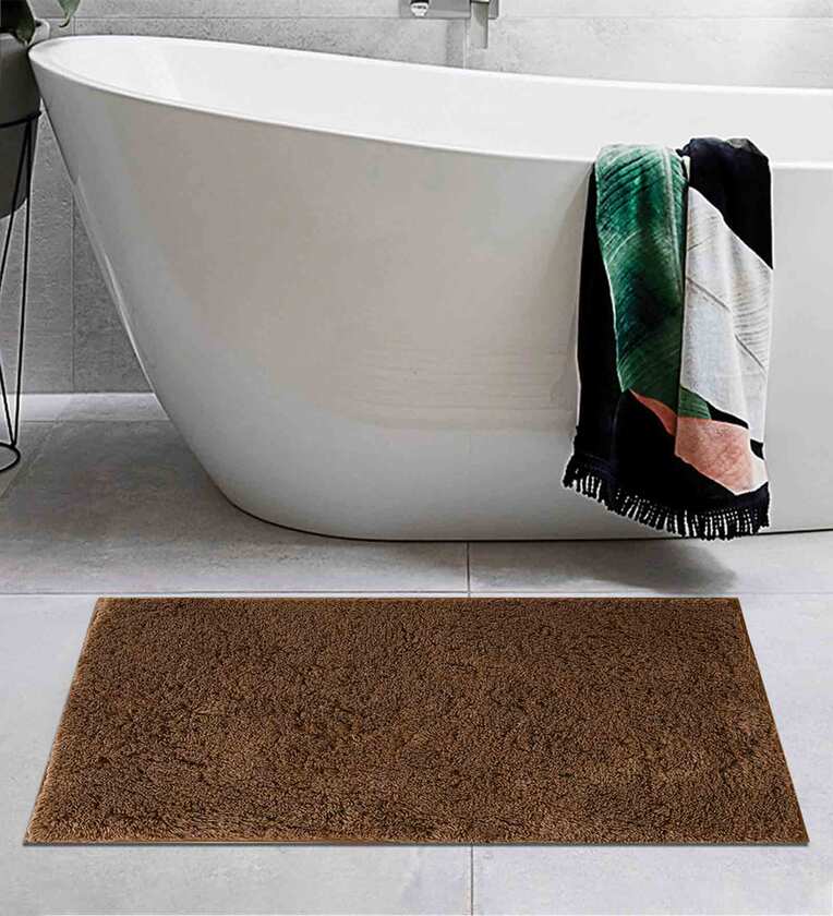 Brown Solid Cotton AntiSkid Bathmat