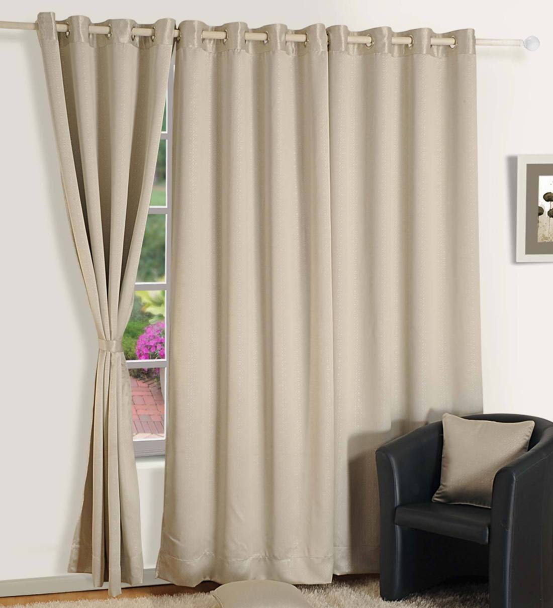 Brown Solid Faux Silk 8 Ft Blackout Eyelet Door Curtains (Set of 2)