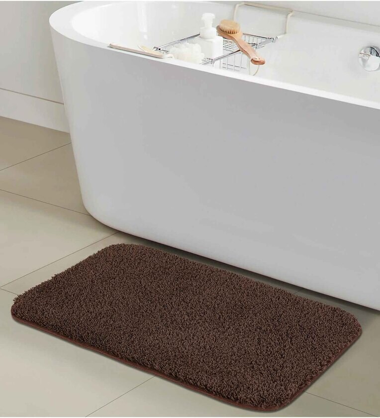 Brown Solid Polyester 24x16 Inch AntiSkid Bath Mat