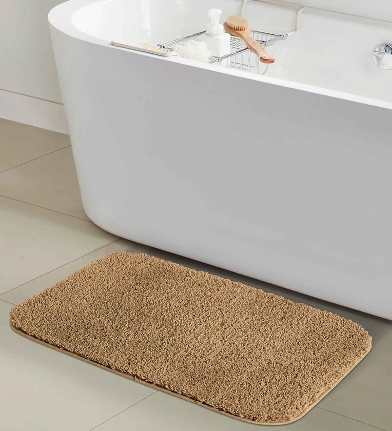 Brown Solid Polyester 24x16 Inches Anti Skid Bath Mat