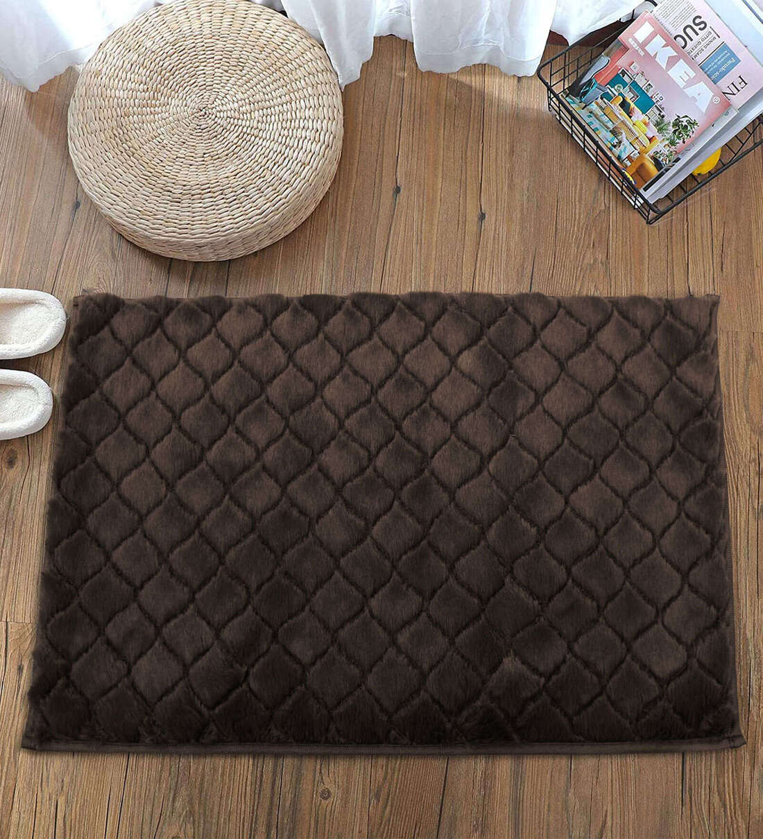 Brown Geometric Polyester 24x16 Inches Super Soft Bath Mat