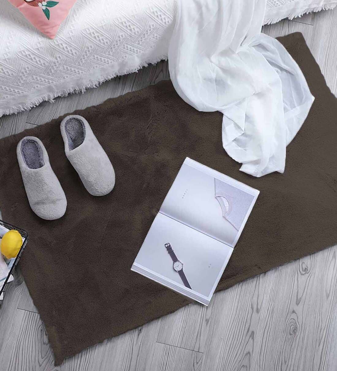 Brown Solid Polyester 30x18 Inches AntiSkid Bath Mat