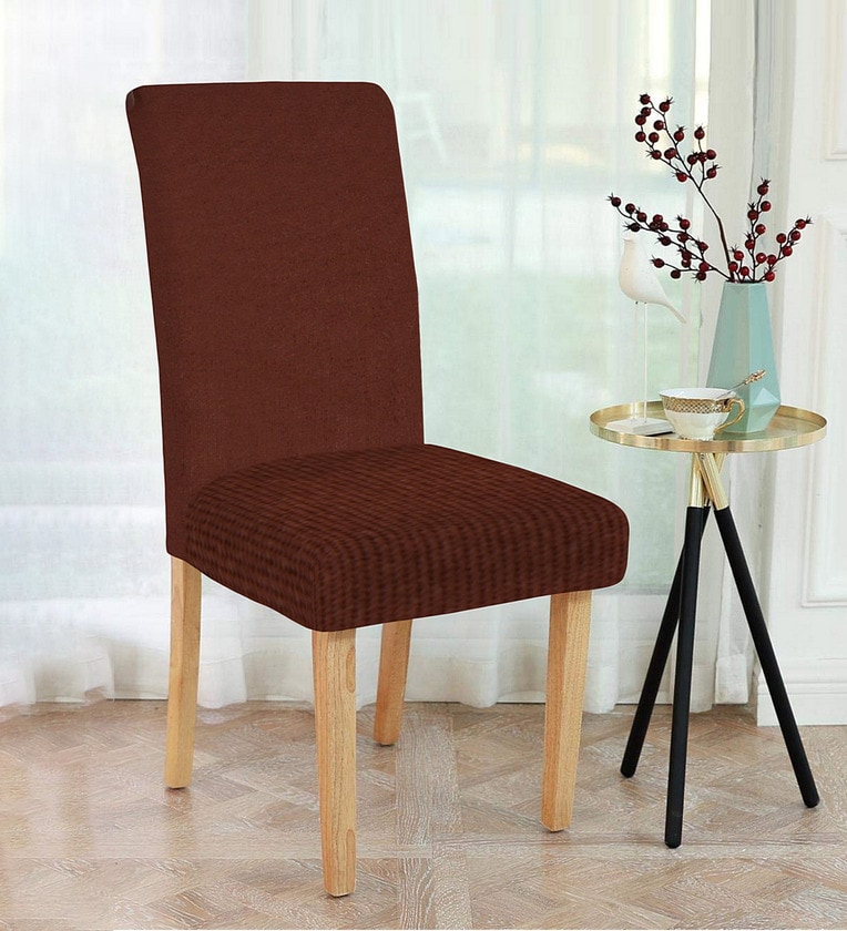 Brown Striped Polyester 15x19 Inches Stretchable Chair Covers (Set of 8)