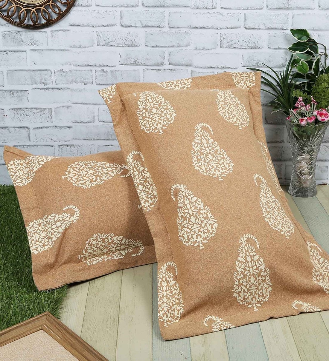 Brown Traditional 200 TC 100 % Cotton 27X17 Inches Pillow Covers (Set of 2)
