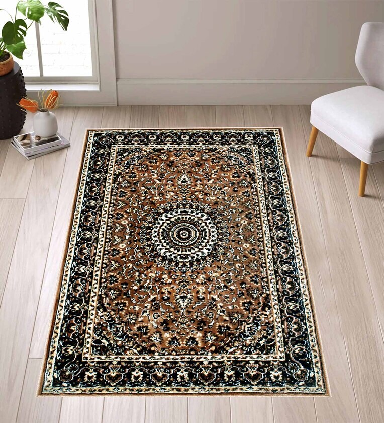 Brown Traditional Polyester 3 ft x 5 ft Machine Made Carpet