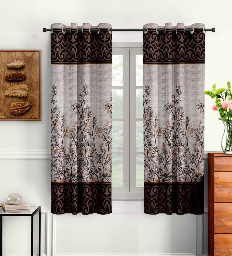 Brown Traditional Polyester 5 Ft Semisheer Eyelet Window Curtains (Set of 2)