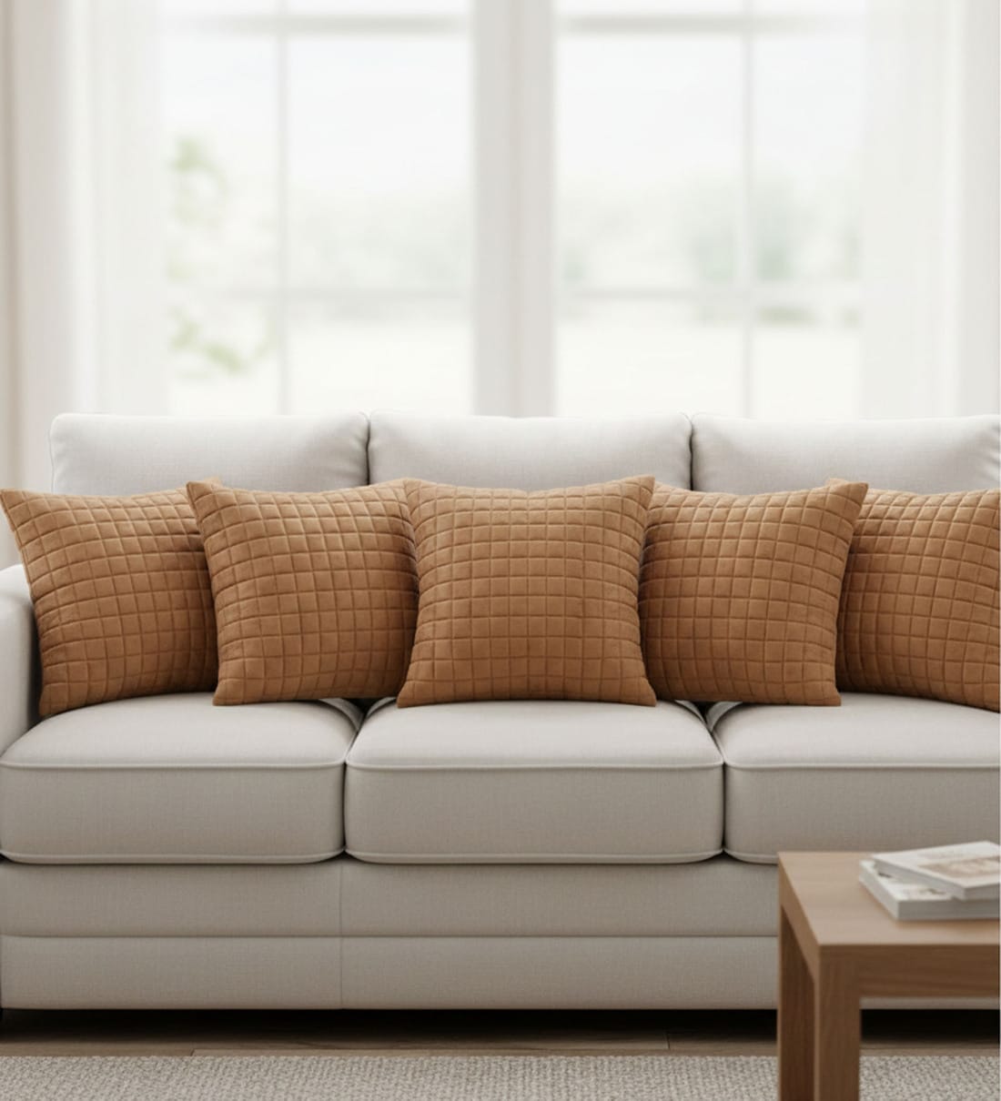 Brown Velvet Embroidered 16X16 Inches 5Pcs Cushion Covers