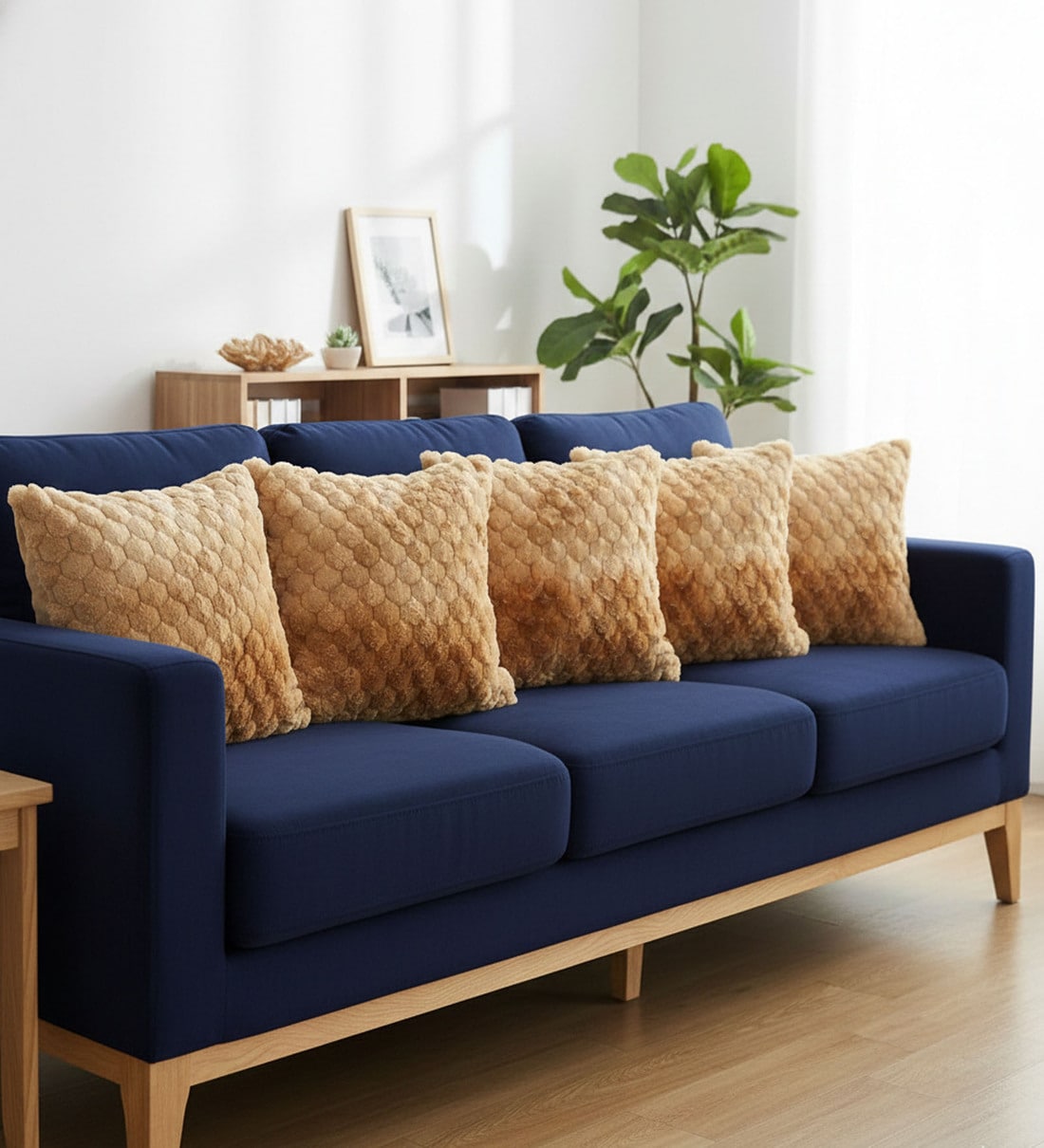 Brown Velvet Rabit Hair Feel 16X16 Inches 5Pcs Cushion Covers