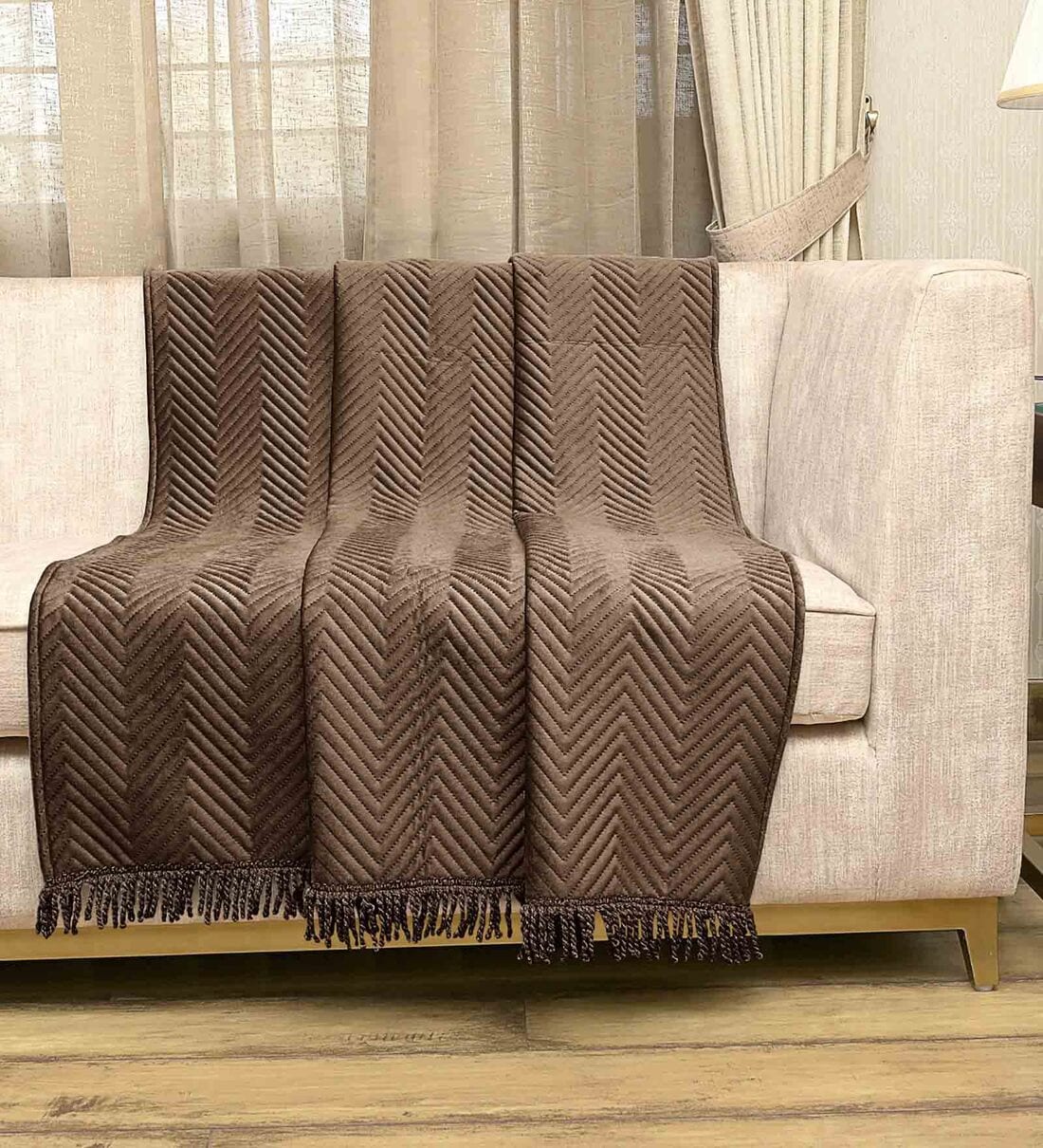 Brown Velvet Zig Zag 55x63 Inches Sofa Throw