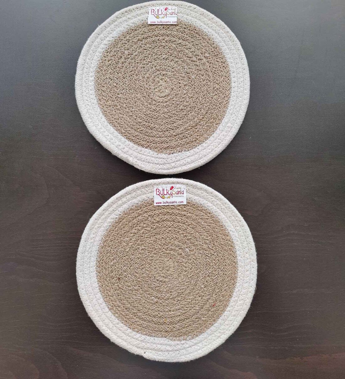 Pack of 2 placemats. Scratch and noise resistant. Reversible Use and machine washable. Useful for hot pans, pots for general decoration like wall d cor. Non-slippery, heat-insulating, colour-fast, odourless, environment friendly. Material Made of high-quality cotton. Shape: Round, Size: 23 cm. Great for daily use or special occasions. These beautiful bulkysanta's placemats or placement mats are eco-friendly and curated with love by our local artisans.
