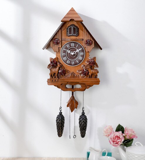 Brown Wood Single Bird and Pendulum Hut Shape Cuckoo Clock